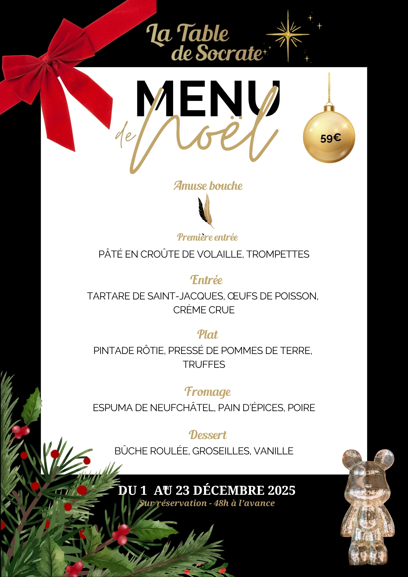 Les réservations pour le menu de Noël sont à réaliser 48h à l’avance.